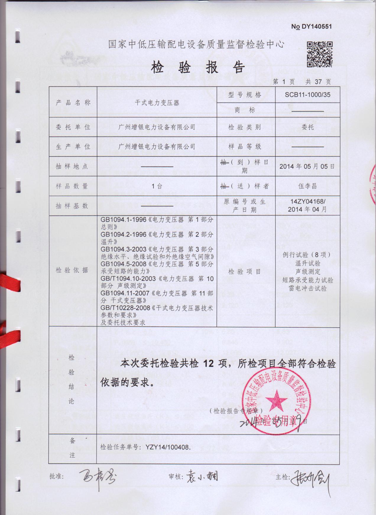 Guangzhou Zengyin Power Equipment Co. Ltd.    Product Certification