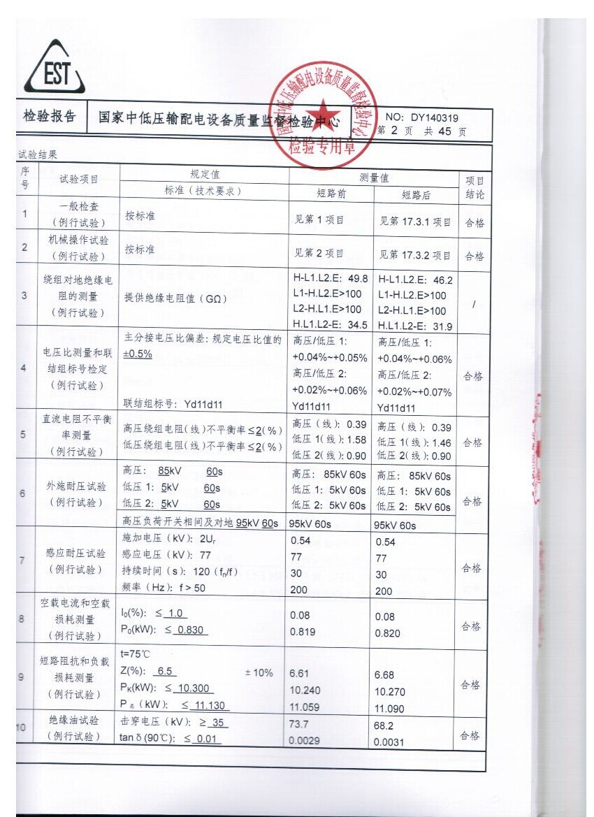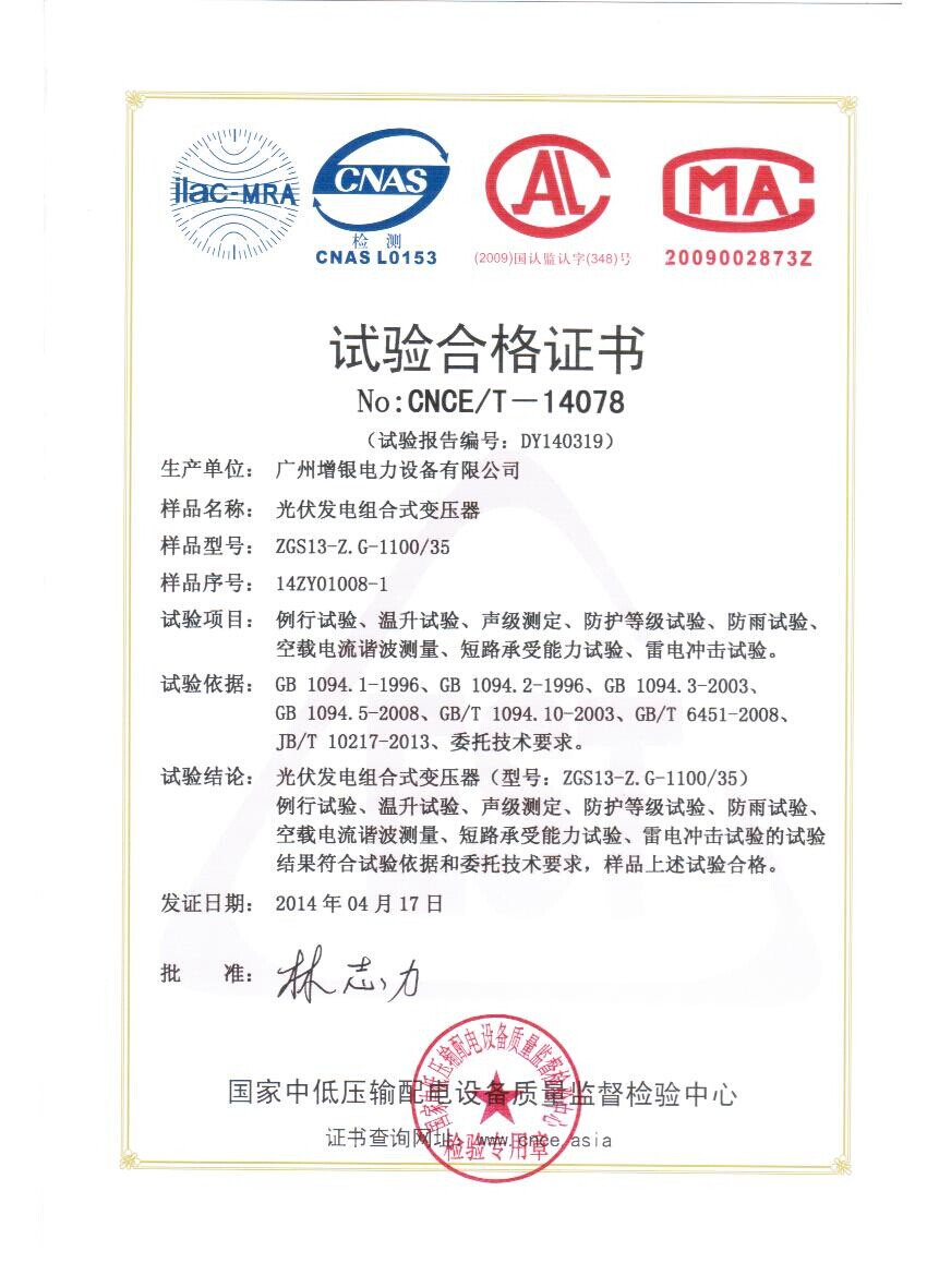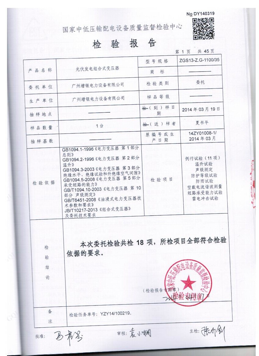 ZGS13-Z.G-1100/35 光伏发电组合式变压器检验报告