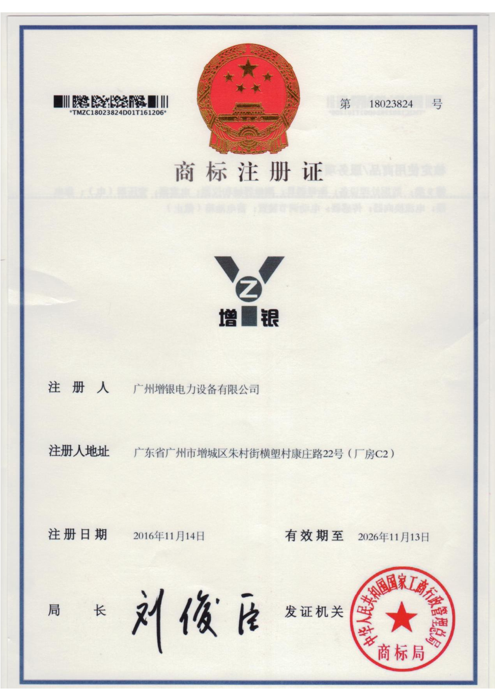 商标注册证书