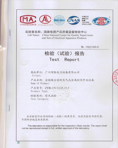 广州增银电力设备有限公司    产品资质