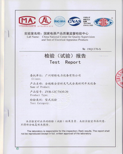 广州增银电力设备有限公司    产品资质